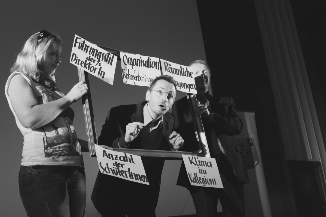 Einlagen die Ankündigungen und Interviews. Neben den Rahmenbedingungen für gute Schule (siehe Foto) und